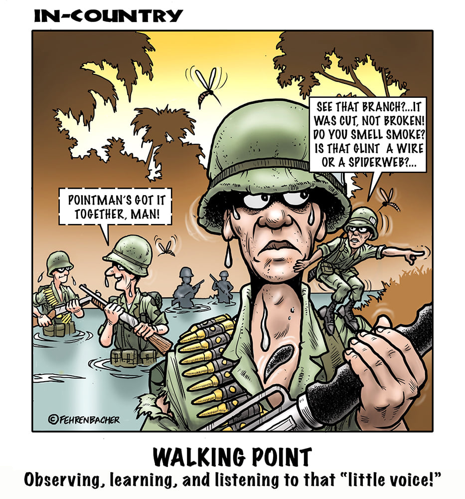 Phil enlisted in the Army in 1965 where you served for years in Vietnam.  He became a graphic designer and has worked for the state of Oregon for 26 years.  He retired in 2003 and started the Cartoon "In-Country".  The cartoons reflect his experiences during his tour of duty in South Vietnam.