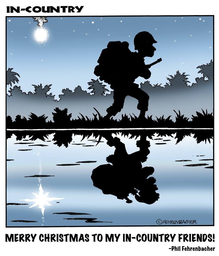 Phil enlisted in the Army in 1965 where you served for years in Vietnam.  He became a graphic designer and has worked for the state of Oregon for 26 years.  He retired in 2003 and started the Cartoon "In-Country".  The cartoons reflect his experiences during his tour of duty in South Vietnam.