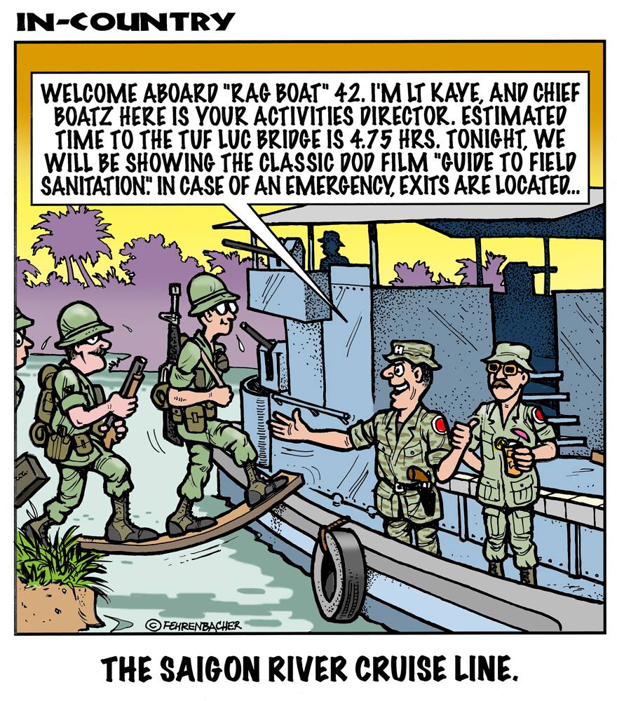 Phil enlisted in the Army in 1965 where you served for years in Vietnam.  He became a graphic designer and has worked for the state of Oregon for 26 years.  He retired in 2003 and started the Cartoon "In-Country".  The cartoons reflect his experiences during his tour of duty in South Vietnam.