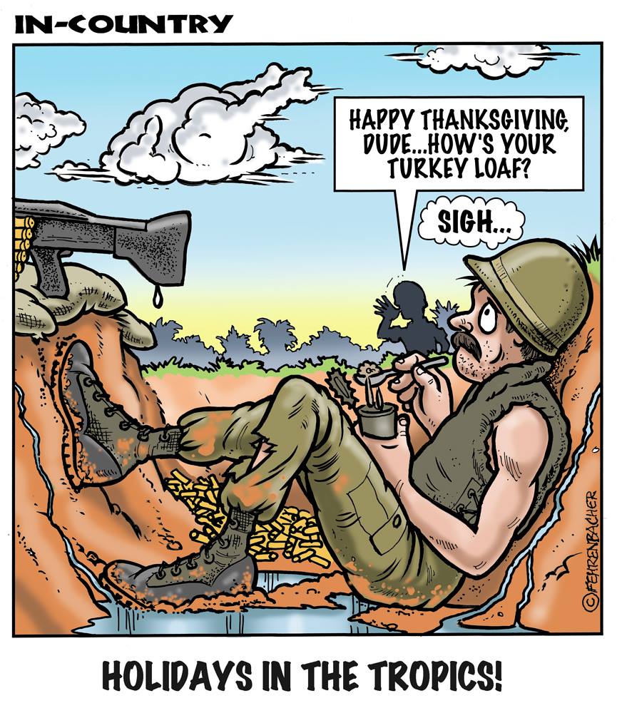 Phil enlisted in the Army in 1965 where you served for years in Vietnam.  He became a graphic designer and has worked for the state of Oregon for 26 years.  He retired in 2003 and started the Cartoon "In-Country".  The cartoons reflect his experiences during his tour of duty in South Vietnam.