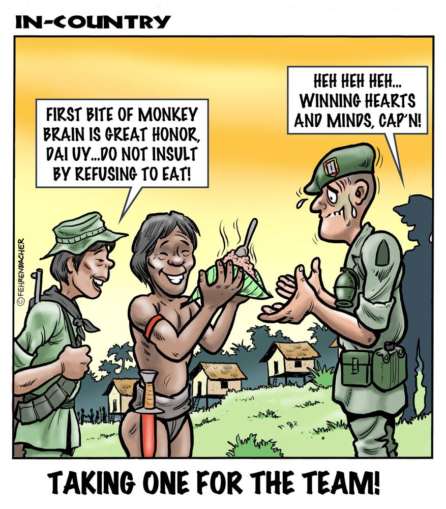 Phil enlisted in the Army in 1965 where you served for years in Vietnam.  He became a graphic designer and has worked for the state of Oregon for 26 years.  He retired in 2003 and started the Cartoon "In-Country".  The cartoons reflect his experiences during his tour of duty in South Vietnam.